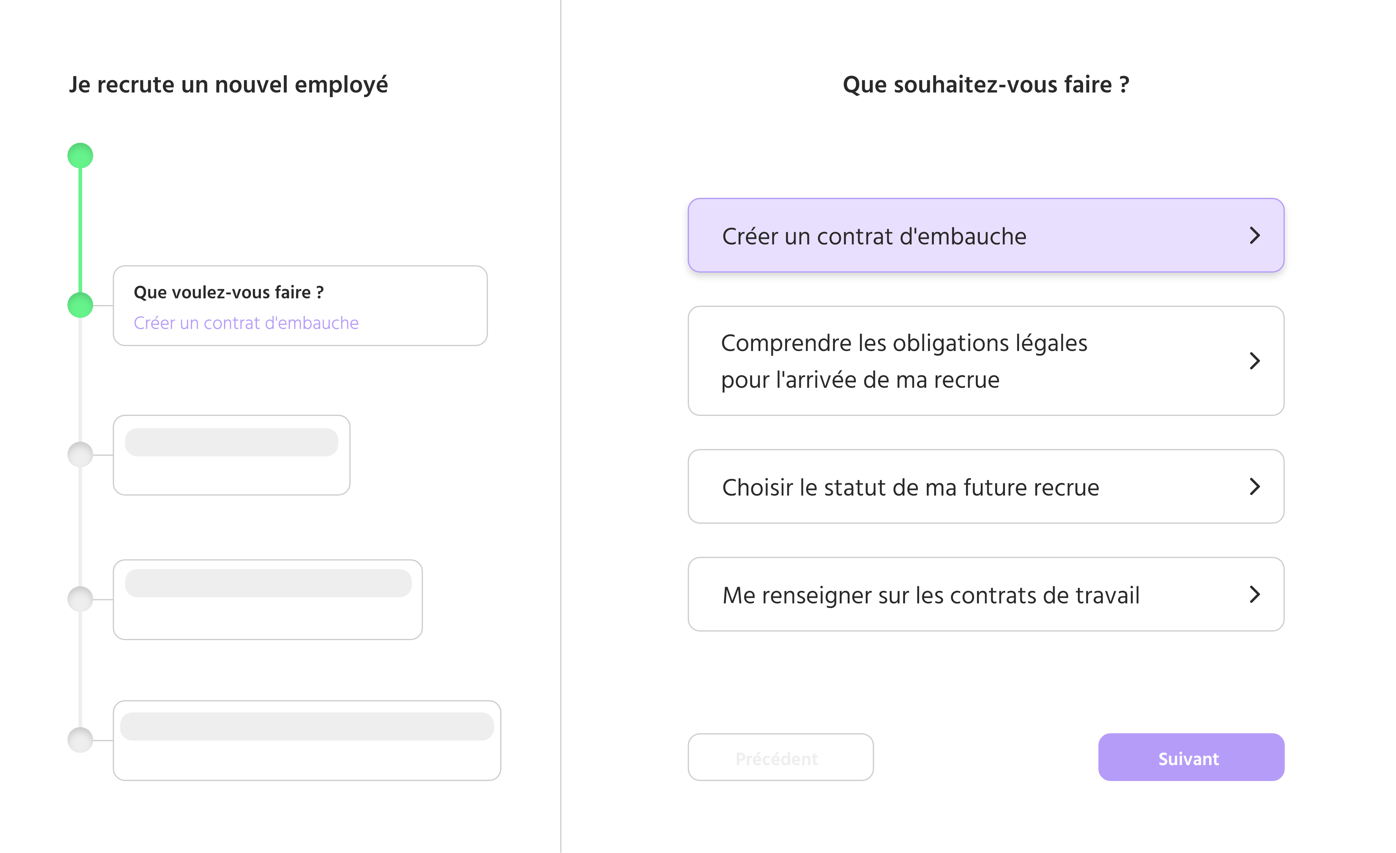 Ne subissez plus le juridique : anticipez vos besoins et protégez-vous des risques majeurs. Angelaw vous guide sur les bonnes pratiques légales à respecter pour être toujours en conformité avec la loi et protéger votre activité. Choisissez une thématique (nouvelle embauche, freelance, mise en place du CSE, conformité RGPD, propriété intellectuelle, etc.) et répondez à quelques questions. Nous identifions les zones de risques et vous suggérons une liste d'actions à mener en fonction de votre situation.